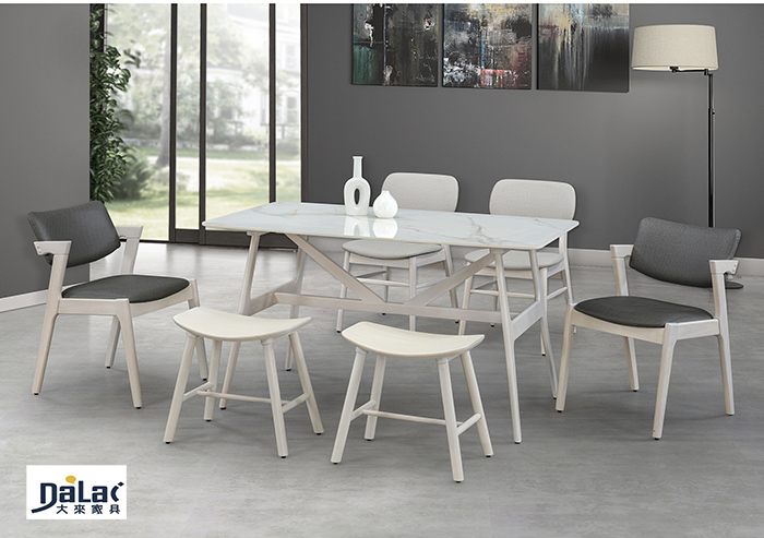 | 產品 | 373-301亮面岩板實木洗白色餐桌椅組 |