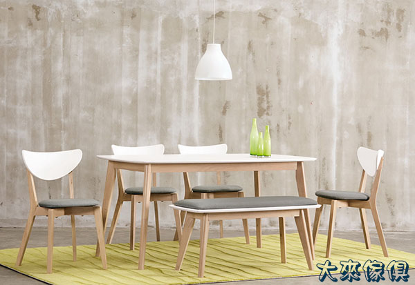 餐桌:桌面MDF全烤式材質、桌腳橡膠木實木、優麗坦耐磨耐水塗裝。 餐椅材質:實木、優麗坦耐磨耐水塗裝、高級棉麻布+高密度泡棉。 |