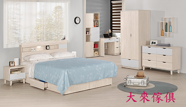 5尺床頭:寬151.5cm 深14cm 高97cm 3.5尺床頭:寬106cm 深14cm 高97cm 單邊三抽六分床底:高25.5cm 床頭櫃:寬45.5cm 深40cm 高45.5cm 六斗櫃:寬109cm 深40cm 高75cm 衣櫃:寬75.5cm 深58.5cm 高183cm |